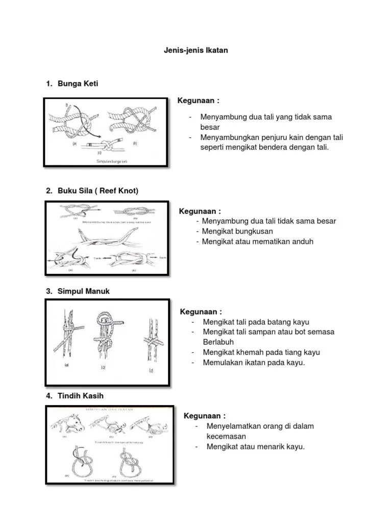 Contoh simpulan seperti buku sila, tindih kasih, simpul himpit.